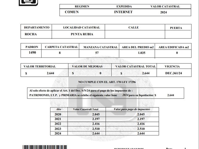 Terreno en Venta en Punta Rubia – 1.035 m² en Calle Valizas
