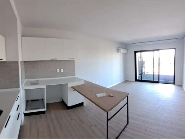 El diseño interior propone un espacio integrado, funcional y moderno, con buena capacidad de almacenamiento gracias a sus placares. La conexión con el exterior se da a través de amplios ventanales que vinculan el ambiente con la terraza.